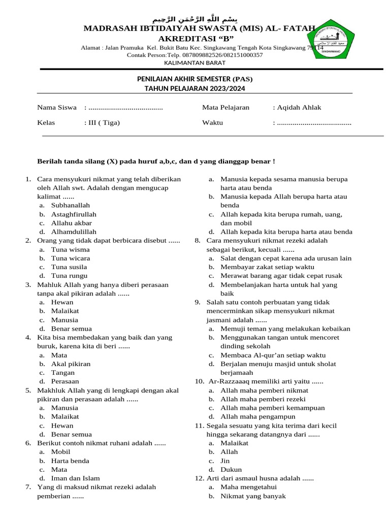 Tahun ajaran baru seringkali diwarnai dengan semangat baru, begitu pula dengan semester genap. Bagi siswa kelas 3 Sekolah Dasar, semester 2 menjadi penanda penting dalam perjalanan akademik mereka. Periode ini tidak hanya menguji pemahaman materi yang telah dipelajari sepanjang semester pertama, tetapi juga memperkenalkan konsep-konsep baru yang lebih mendalam. Dalam konteks inilah, Soal AA Kelas 3 Semester 2 memegang peranan krusial. Soal-soal ini, yang seringkali mencakup berbagai mata pelajaran seperti Matematika, Bahasa Indonesia, Ilmu Pengetahuan Alam (IPA), Ilmu Pengetahuan Sosial (IPS), dan Pendidikan Pancasila dan Kewarganegaraan (PPKn), menjadi alat ukur utama bagi guru untuk mengevaluasi kemajuan belajar siswa.